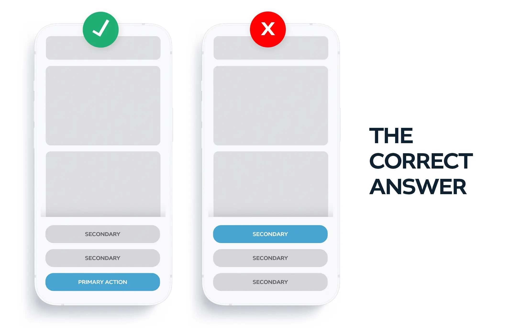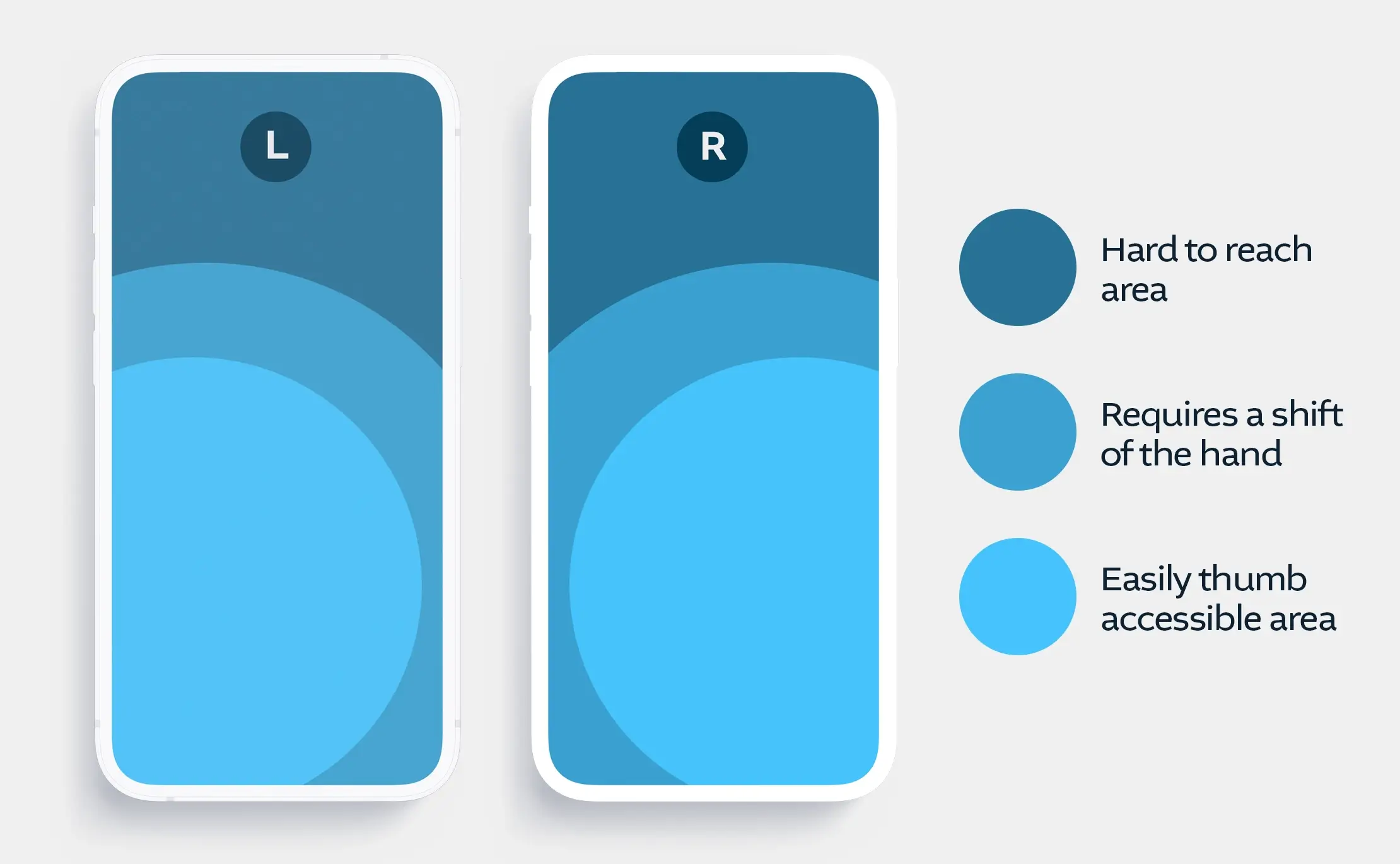 When designing for mobile, it is important to know your thumb area. Putting your primary action to the bottom of the screen makes it easier for a user’s thumb to reach it.